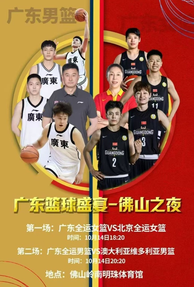 媒体人:广东全运篮球男、女队将在10月14日前往佛山参加热身赛