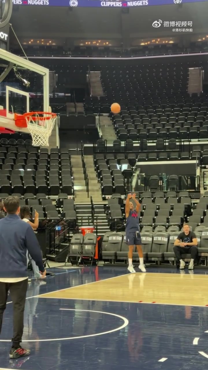 快船季前赛主场战掘金 保罗赛前热身飚中负角度三分
