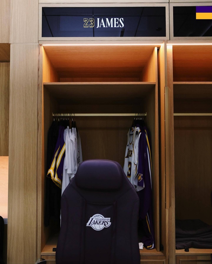 爱过!詹姆斯的更衣柜里疑似挂着一件浓眉的球衣