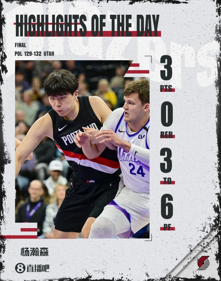 10月17日讯 开拓者129-132不敌爵士,杨瀚森NBA季前赛收官战六犯离场纯纯交学费了。 杨瀚森在场时先后面对凯斯勒与努尔基奇,均没占到便宜,末节登场51秒迅速两犯,犯满离场了。 全场比赛,杨瀚森出战15分钟, 投篮2中1,三分1中1,0罚球拿到3分1助攻1抢断1盖帽,还有3失误6犯规,正负值-3。 |