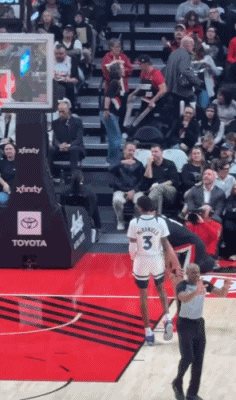 GIF-杨瀚森遭戈贝尔前板+造犯规 利拉德场边指导“你肘他啊”! GIF-随后被换下