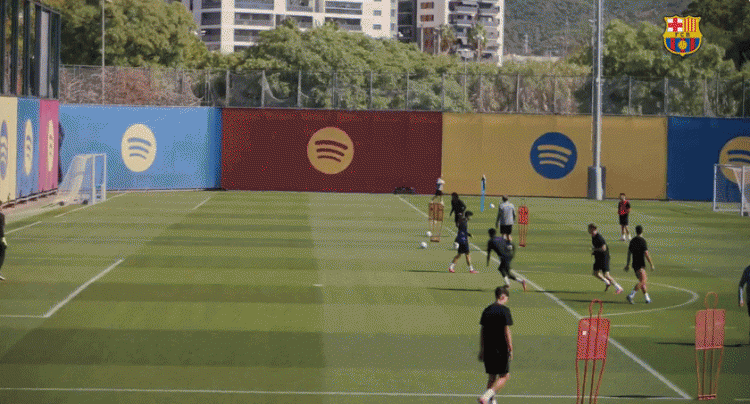 巴萨对阵奥维耶多赛前最后一练,莱万帅气凌空侧钩破门