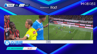 09月29日讯 米兰vs那不勒斯第57分钟,埃斯图皮尼安送点,德布劳内主罚破门,此时比分变为米兰2-1那不勒斯,米兰十人作战!
