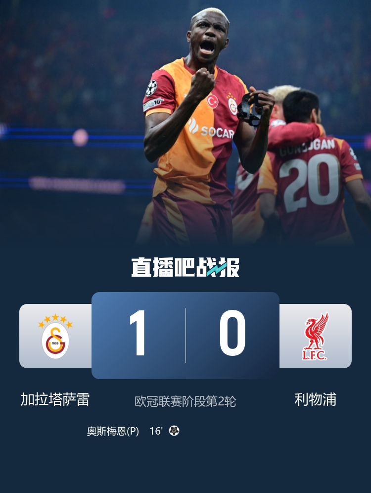 【战报新闻】 爆冷!利物浦0-1加拉塔萨雷遭连败 索博送点阿利森、埃基蒂克伤退 欧冠第2轮首日积分榜:拜仁皇马国米6分领跑!红军输球跌至第16
