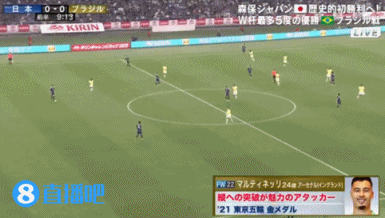 【比赛焦点瞬间】 第9分钟, 日本后场解围失误,马丁内利一脚似传似射偏出底线。↓