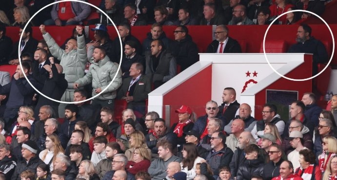 好气!马雷斯卡在看台激情庆祝进球,而森林老板就在一旁瞪着