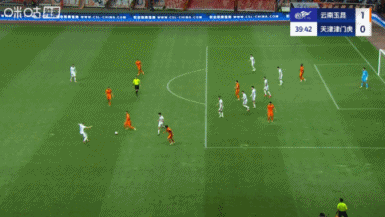 【比赛焦点瞬间】 第4分钟,津门虎左路攻势,王秋明禁区中一脚射门,偏出了球门右侧↓