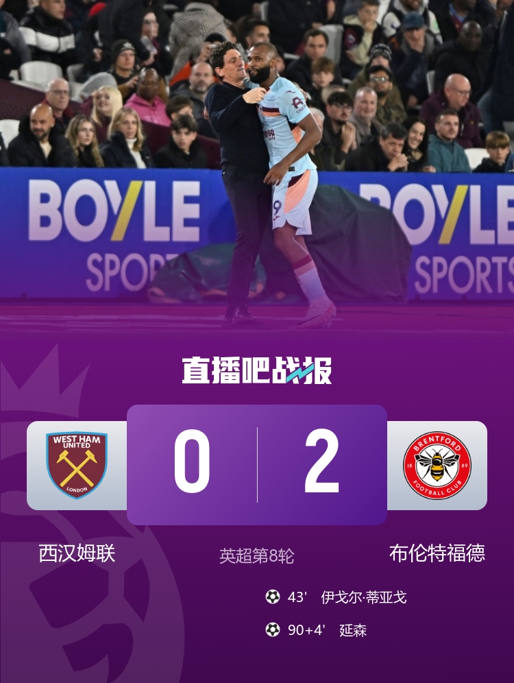 英超第8轮,西汉姆联0-2布伦特福德,遭遇主场4连败。 德天空:皇马不一定续约阿拉巴吕迪格,或引发转会市场的连锁效应